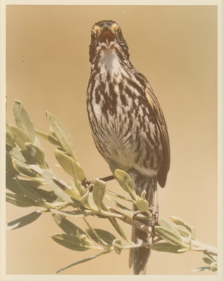 Sykes, Paul W. Jr., "Adult Male Dusky Seaside Sparrow Singing on Territory Impoundment T-24-C, July 1, 1970" (1970). Florida Ornithological Society - Images. Image 1279.