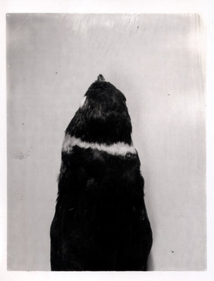 Two photocopies of the first white-collared swift (Streptoprocne zonaris) specimen found in the United States. The bird was found deceased at a beachside home in Pensacola, Florida, on January 25, 1981. The top photo gives a side view of the swift while the second shows the bird on its back with its wings expanded, revealing the white feathers around its neck and the lighter-colored feathers on the underside of its wings.