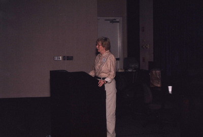Dr. Fran Jones speaks behind a podium at the fall Florida Ornithological Society meeting held at the DoubleTree Hotel in Tallahassee, Florida on September 29 through October 1, 2000.