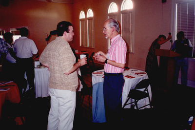Fred Lohrer (right) chats with another guest during the spring Florida Ornithological Society meeting held April 21, 2001 at the Pelican Yacht Club in Fort Pierce, Florida.