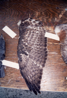 Florida Ornithological Society, "Large, Patterned Brown Bird Wing Sits on Display for Quiz in St. Petersburg" (2002). Florida Ornithological Society - Images. Image 2016.