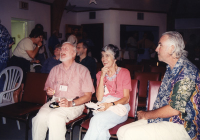 From left to right: Jack Hailman and his wife Liz Hailman laugh beside Bill Stokes during the fall 30th anniversary Florida Ornithological Society meeting held at the Marathon Garden Club on October 4-6, 2002 in Marathon, Florida.