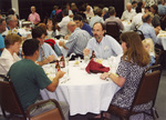 Peter (third from right) and Victoria Merritt (second from right) are dining with fellow attendees while seated at a round table during a Florida Ornithological Society meeting held in Cocoa Beach, Florida, circa 1994.