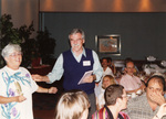 Marie Slaney (far left) and other attendees are seated and standing around a table during a 1994 Florida Ornithological Society meeting held in Cocoa Beach, Florida.