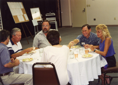 Attendees are dining while seated at a round table during a 1994 Florida Ornithological Society meeting held in Cocoa Beach, Florida.