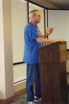 A speaker stands behind a wooden podium during the Spring 1995 meeting of the Florida Ornithological Society held April 28-30, 1995, at The Radisson Hotel in Gainesville, Florida.