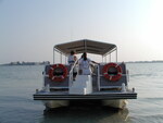 A group of Florida Ornithological Society members are on a boat in open water near Shell Key Preserve in Tierra Verde, Pinellas County, Florida. The photograph was taken during a field trip on April 27, 2002, during the Florida Ornithological Society’s 30th anniversary meeting.