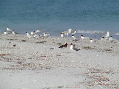 Florida Ornithological Society, "Seagulls at Shoreline of Shell Key Preserve, April 27, 2002, A" (2002). Florida Ornithological Society - Images. Image 2367.