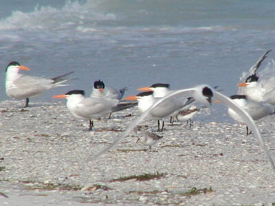 A group of seagulls walk the shoreline of the Shell Key Preserve. The photograph was taken during a field trip on April 27, 2002, during the Florida Ornithological Society’s 30th anniversary meeting.