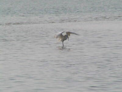 A white bird wades in the water at Shell Key Preserve in Tierra Verde, Pinellas County, Florida. The photograph was taken during a field trip on April 27, 2002, during the Florida Ornithological Society’s 30th anniversary meeting.