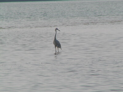 A white bird wades in the water at Shell Key Preserve in Tierra Verde, Pinellas County, Florida. The photograph was taken during a field trip on April 27, 2002, during the Florida Ornithological Society’s 30th anniversary meeting.