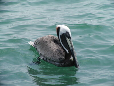 A pelican swimming in the water at Shell Key Preserve in Tierra Verde, Pinellas County, Florida. The photograph was taken during a field trip on April 27, 2002, during the Florida Ornithological Society’s 30th anniversary meeting.