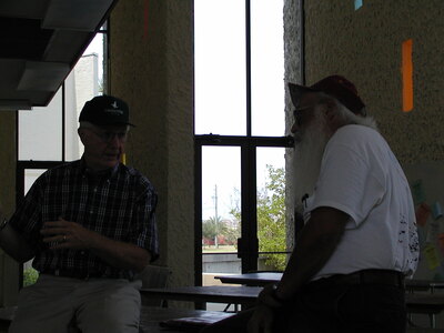 Two Florida Ornithological Society members stand indoors during an afternoon program at Eckerd College in St. Petersburg, Florida on April 27, 2002, during the Florida Ornithological Society’s 30th anniversary meeting.