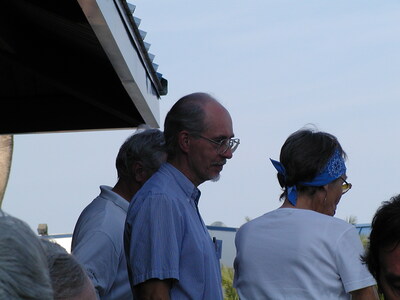 Fred Lohrer (center) Florida Ornithological Society members converse and dine outdoors at a happy hour at the Holiday Inn SunSpree Resort in St. Petersburg, Florida, on April 27, 2002, during the Florida Ornithological Society’s 30th anniversary meeting.