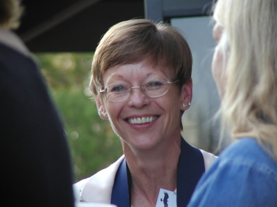Candid shot of Pam Bowen at a happy hour at the Holiday Inn SunSpree Resort in St. Petersburg, Florida, on April 27, 2002, during the Florida Ornithological Society’s 30th anniversary meeting. Additional attendees are visible.