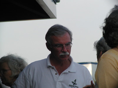 Candid shot of a Florida Ornithological Society member at a happy hour at the Holiday Inn SunSpree Resort in St. Petersburg, Florida, on April 27, 2002, during the Florida Ornithological Society’s 30th anniversary meeting. Additional attendees are visible.