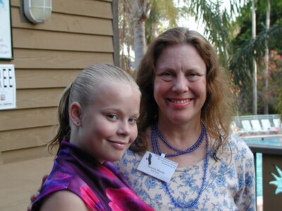 Victoria Merritt stands with another person at a happy hour at the Holiday Inn SunSpree Resort in St. Petersburg, Florida, on April 27, 2002, during the Florida Ornithological Society’s 30th anniversary meeting.