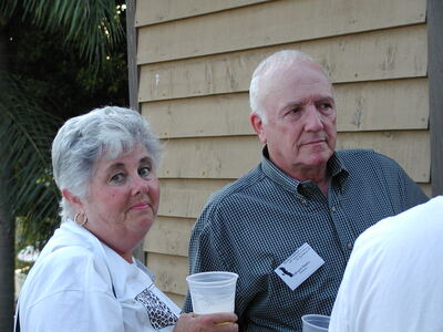 Marie (left) and Edward Slaney (right) stand at a happy hour at the Holiday Inn SunSpree Resort in St. Petersburg, Florida, on April 27, 2002, during the Florida Ornithological Society’s 30th anniversary meeting.