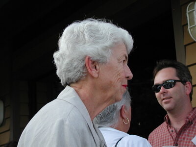 Candid shot of Peggy Powell at a happy hour at the Holiday Inn SunSpree Resort in St. Petersburg, Florida, on April 27, 2002, during the Florida Ornithological Society’s 30th anniversary meeting. Additional attendees are visible.