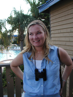 Candid shot of a Florida Ornithological Society member at a happy hour at the Holiday Inn SunSpree Resort in St. Petersburg, Florida, on April 27, 2002, during the Florida Ornithological Society’s 30th anniversary meeting. Additional attendees are visible.