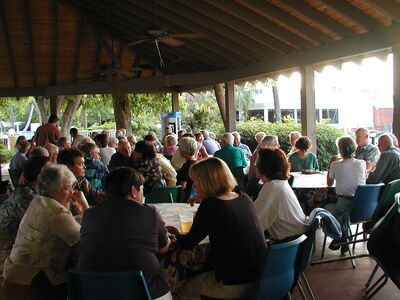 Florida Ornithological Society members seated at a banquet at the Holiday Inn SunSpree Resort in St. Petersburg, Florida, on April 27, 2002, during the Florida Ornithological Society’s 30th anniversary meeting.