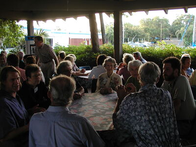 Florida Ornithological Society members seated at a banquet at the Holiday Inn SunSpree Resort in St. Petersburg, Florida, on April 27, 2002, during the Florida Ornithological Society’s 30th anniversary meeting.