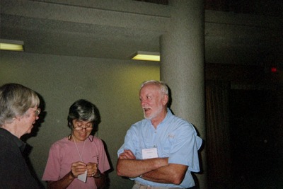 Liz (middle) and Jack Hailman right) stand indoors and converse with another person during the Spring 2004 Florida Ornithological Society meeting. The meeting was held between April 23-25, 2004, in Tarpon Springs, Florida.