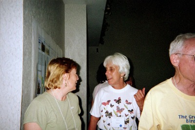 Sally Jue (center) and other attendees stand indoors and converse during the Spring 2004 Florida Ornithological Society meeting. The meeting was held between April 23-25, 2004, in Tarpon Springs, Florida.