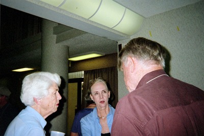 Peggy Powell (left) and other attendees stand indoors and converse during the Spring 2004 Florida Ornithological Society meeting. The meeting was held between April 23-25, 2004, in Tarpon Springs, Florida.