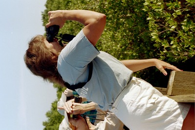 A Florida Ornithological Society member looks through binoculars during a field trip of the Spring 2004 meeting, which was held between April 23-25, 2004, in Tarpon Springs, Florida.
