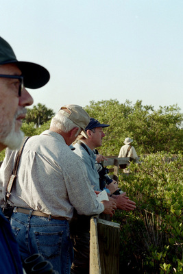 Florida Ornithological Society members walk on a boardwalk during a field trip of the Spring 2004 meeting, which was held between April 23-25, 2004, in Tarpon Springs, Florida.