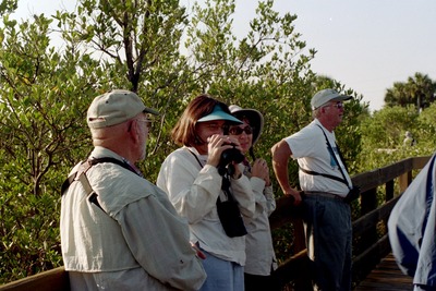 Florida Ornithological Society members walk on a boardwalk during a field trip of the Spring 2004 meeting, which was held between April 23-25, 2004, in Tarpon Springs, Florida.