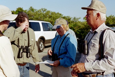 Florida Ornithological Society members converse outdoors during a field trip of the Spring 2004 meeting, which was held between April 23-25, 2004, in Tarpon Springs, Florida.