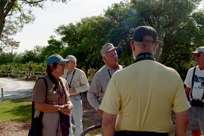 Florida Ornithological Society members converse outdoors during a field trip of the Spring 2004 meeting, which was held between April 23-25, 2004, in Tarpon Springs, Florida.
