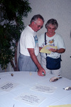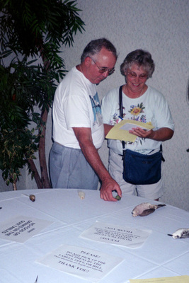 Two Florida Ornithological Society members inspect stuffed bird specimens during the Spring 2004 meeting, which was held between April 23-25, 2004, in Tarpon Springs, Florida.