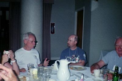Attendees are dining and seated around a round table during the Spring 2004 Florida Ornithological Society meeting, which was held between April 23-25, 2004, in Tarpon Springs, Florida.