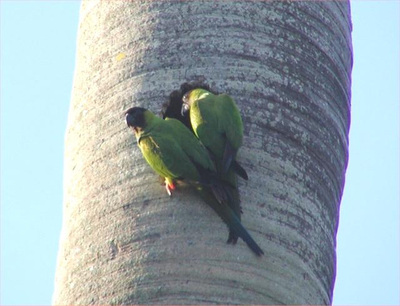 Pranty, Bill, "Two Green Parrots Perched Near Tree Hollow, Broward County, September 18, 2002, A" (2002). Florida Ornithological Society - Images. Image 2680.
