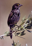 Photograph of a dusky seaside sparrow (Ammospiza maritima nigrescens) perched on a branch.