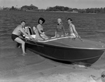 Three women and one man on a Tampa Ski-Bees boat on Lake Egypt in Tampa, Florida.