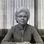 Gandy, George Skip IV, "Woman Wearing Glasses and Patterned Shirt, Employee Portrait, First Federal, C" (1960). Gandy Photographs - General, Culture, Politics. Image 3872.