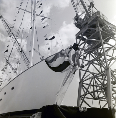 Gandy, George Skip IV, "Decorated Boat at Launch Event, Featherstone Marine, A" (1970). Gandy Photographs - General, Culture, Politics. Image 3958.
