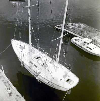 Gandy, George Skip IV, "Aerial View of Boat at Launch Event, Featherstone Marine, B" (1970). Gandy Photographs - General, Culture, Politics. Image 3961.