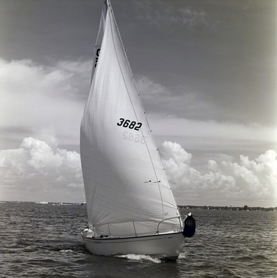 Gandy, George Skip IV, "Sidewinder Sailboat in Tampa Bay, Featherstone Marine" (1975). Gandy Photographs - General, Culture, Politics. Image 3980.