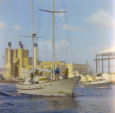 Gandy, George Skip IV, "Two Sailboats by Industrial Park, Featherstone Marine" (1975). Gandy Photographs - General, Culture, Politics. Image 4006.
