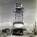 Gandy, George Skip IV, "Gray Gull Boat Attached to Crane, Featherstone Marine, A" (1971). Gandy Photographs - General, Culture, Politics. Image 4045.