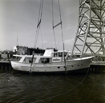 Gandy, George Skip IV, "Gray Gull Boat Attached to Crane, Featherstone Marine, H" (1971). Gandy Photographs - General, Culture, Politics. Image 4053.