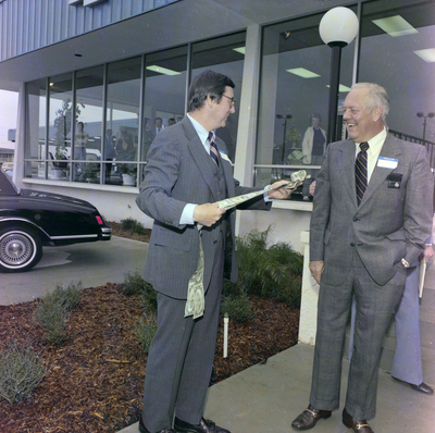 Gandy, George Skip IV, "Attendee Holds Roll of Money, Ferman Chevrolet Event" (1978). Gandy Photographs - General, Culture, Politics. Image 4068.