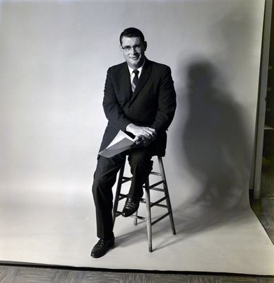 Gandy, George Skip IV, "William Blake Seated on Stool, Fidelity Federal Savings Ad, A" (1975). Gandy Photographs - General, Culture, Politics. Image 4111.