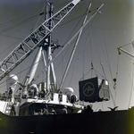 Gandy, George Skip IV, "Crane Loads Square Shipping Container Onto Ship, Fillette Green, B" (1970). Gandy Photographs - General, Culture, Politics. Image 4136.