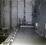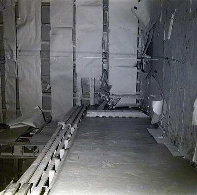 Interior of S. S. Orinoco for Fowler and White law firm. Walls covered in large sheets of paper.